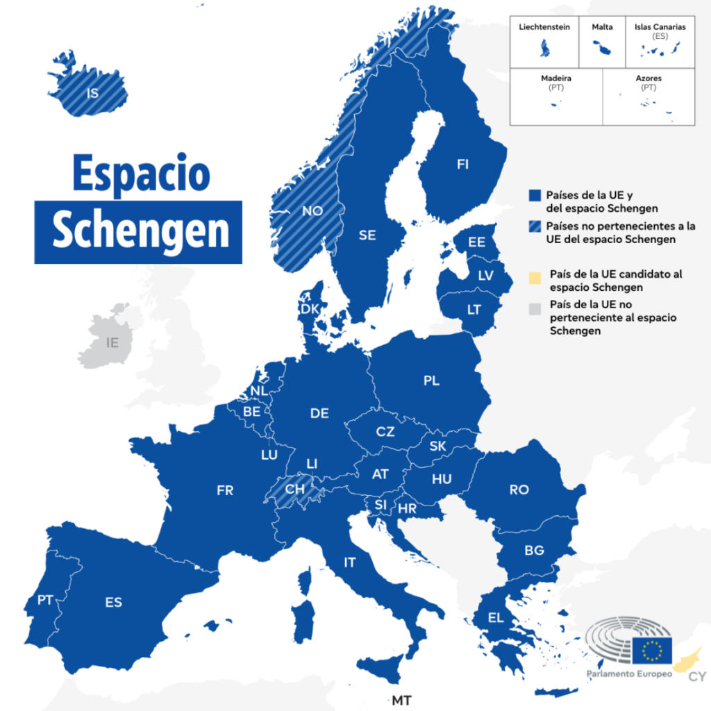 Espacio Schengen. Fuente: Parlamento Europeo.