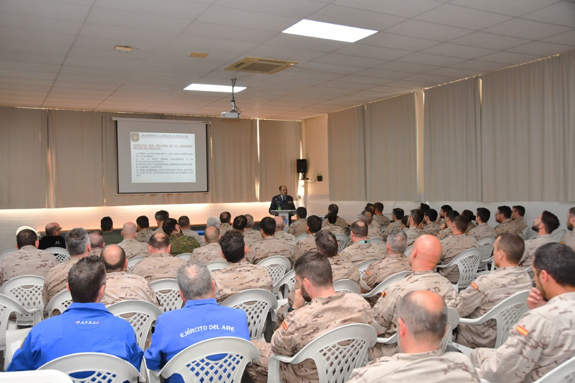La segunda conferencia, más específica, tuvo como audiencia a los mandos de todos los niveles —más de medio centenar—. En ella se desvelaron las claves del liderazgo actual: su concepto, incluidos los componentes ético y estratégico; sus características y elementos; la necesidad de una permanente adecuación y formación continua; y el mantenimiento de los principios humanísticos y técnicos que conforman la historia y tradición del Ejército del Aire y del Espacio.
