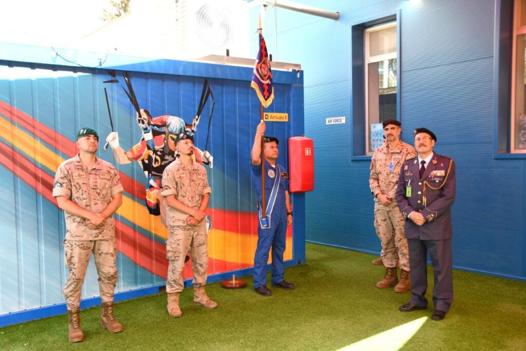 Finalizadas sus intervenciones, el general Moliner fue invitado a un sencillo y emotivo acto militar en el que se incorporaron dos nuevos miembros a la Patrulla Aérea de Paracaidismo del EA.