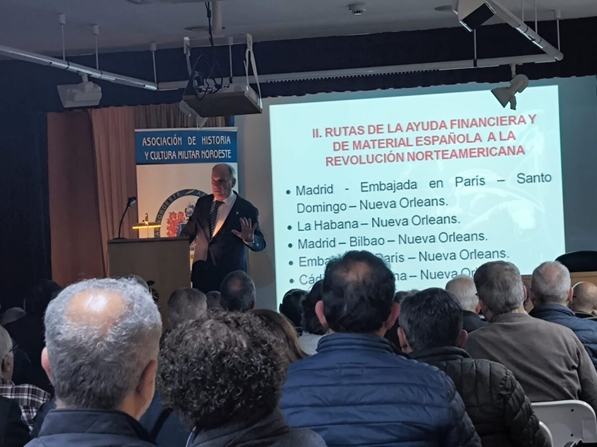 Durante su exposición, el ponente recordó que el II Congreso de Filadelfia, representante de las Trece Colonias de América del Norte, declaró oficialmente su independencia el 4 de julio de 1776. Por ello, este año se cumple el 250 aniversario de aquel acontecimiento. Añadió que la victoria llegó tras la denominada «American Revolution», nombre con el que los estadounidenses se refieren a su Guerra de Independencia (1775-1783).