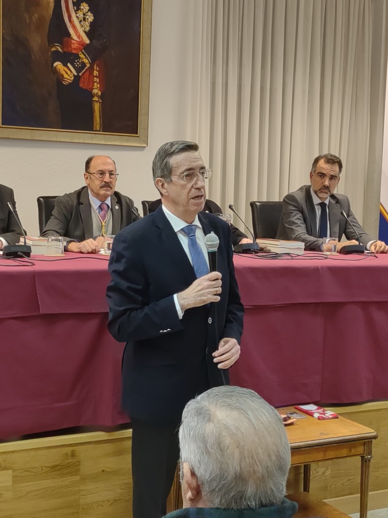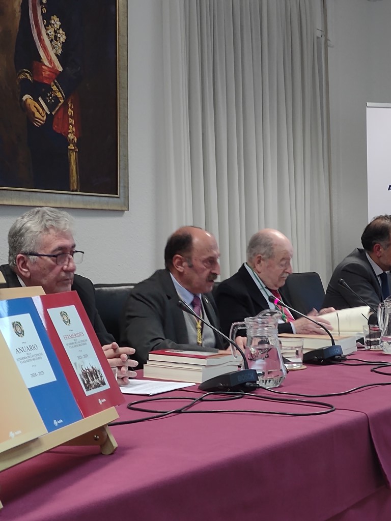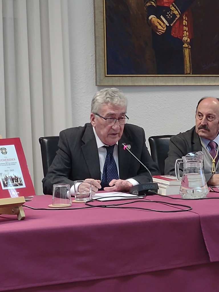 Posteriormente intervino el académico Ángel Díaz Balmori, coordinador del libro de las Efemérides 2023-2025, de publicación bianual. Subrayó que el texto no solo recoge hechos relevantes de la historia militar de España y de las personas decisivas en su desarrollo, sino también otros sucesos quizá menos conocidos, que no deben permanecer en el desván oscuro de la historia, sino ser sacados a la luz y puestos al alcance del conocimiento público.